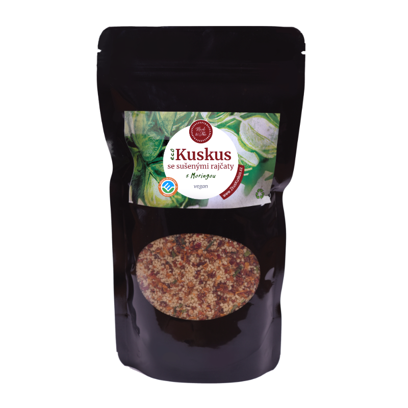Kuskus (obsahuje lepek), sušená rajčata (10 %), česnek, cibule, paprika vločky, pepř černý, pažitka, jedlá sůl, řepkový olej, moringa oleifera 0,45 %.